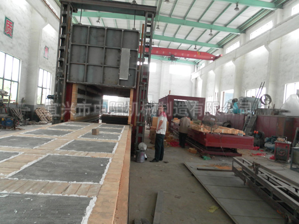 加熱元件采用高溫電阻合金絲繞制成帶狀和螺旋狀,分別吊掛、安放在爐側(cè)、爐門、后墻及臺車擱絲磚上,并用高鋁瓷釘固定,安全簡潔。